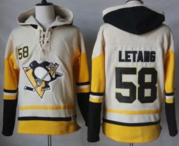 Pittsburgh Penguins #58 Kris Letang Cream Gold Sawyer Hooded Sweatshirt Stitched NHL Jersey