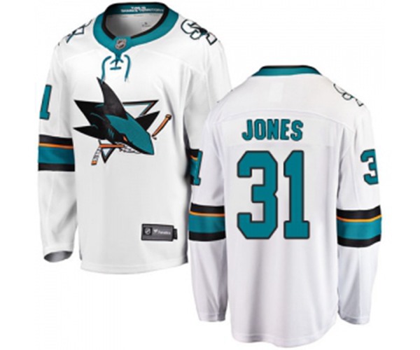 San Jose Sharks #31 Martin Jones Fanatics Branded White Away Breakaway NHL Jersey