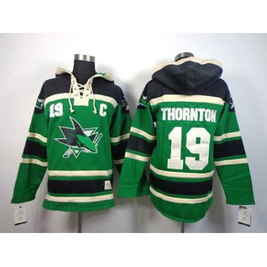 San Jose Sharks #19 Joe Thornton Green [pullover hooded sweatshirt][patch C]