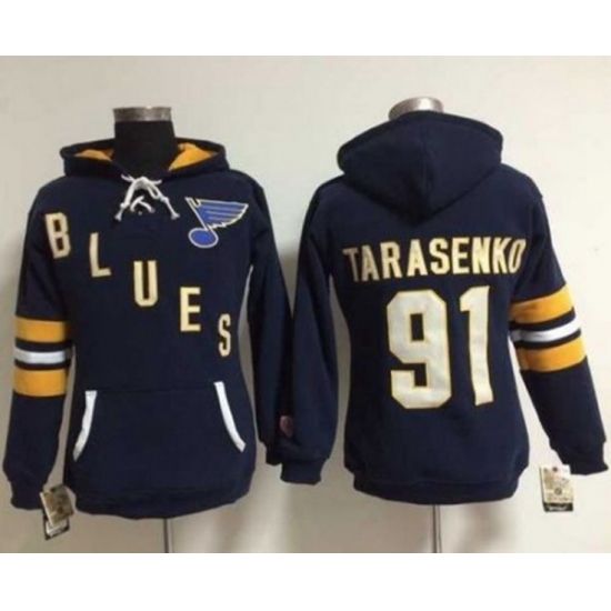 - Women St. Louis Blues #91 Vladimir Tarasenko Navy Blue Old Time Heidi NHL Hoodie