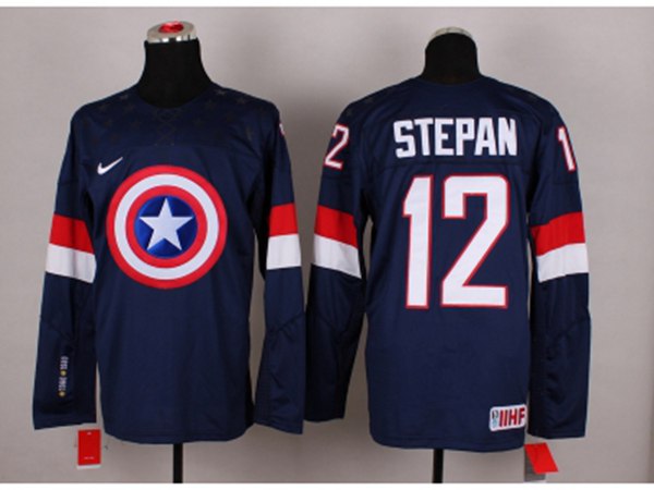 NHL Olympic Team USA #12 Derek Stepan Navy Blue Captain America Fashion Stitched Jerseys