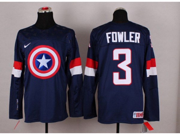 NHL Olympic Team USA #3 Cam Fowler Navy Blue Captain America Fashion Stitched Jerseys