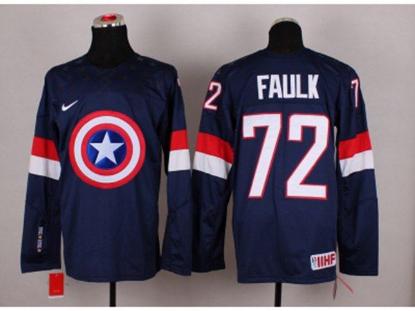 NHL Olympic Team USA #72 Justin Faulk Navy Blue Captain America Fashion Stitched Jerseys