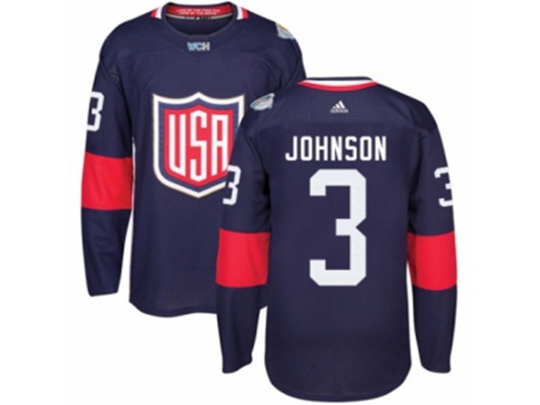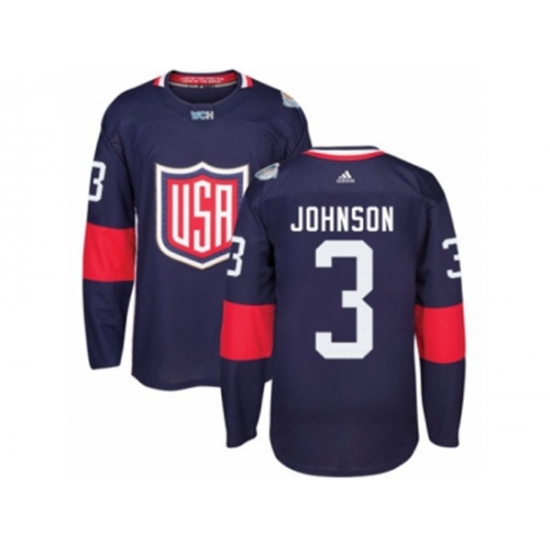 / Youth Adidas Team USA #3 Jack Johnson Premier Navy Blue Away 2016 World Cup Ice Hockey Jersey