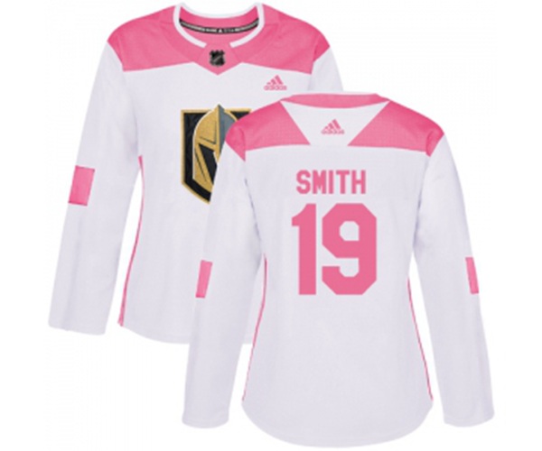 Women Vegas Golden Knights #19 Reilly Smith Authentic White Pink Fashion NHL Jersey